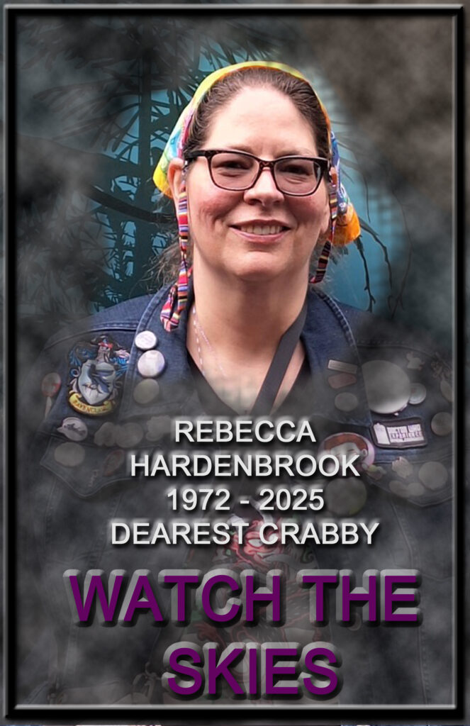 In the time since our last issue, one of our longest standing members passed away. Rebecca Hardenbrook was with the group since the beginning, though her attendance at the physical meetings had been less in recent months. She read, debated and laughed her way through many of the groups reading choices. She attended the extra events like movies or watch parties and was a long standing convention attendee as well. She latched onto fandom and wouldn’t let go, even going as far to publish some fan fiction on Archive of Our Own.